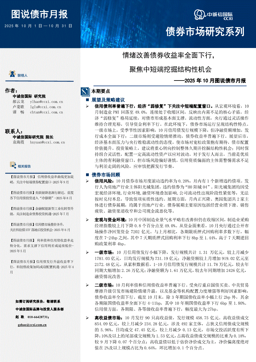 中诚信国际-2025年10月图说债市月报:情绪改善债券收益率全面下行,聚焦中短端挖掘结构性机会-251031