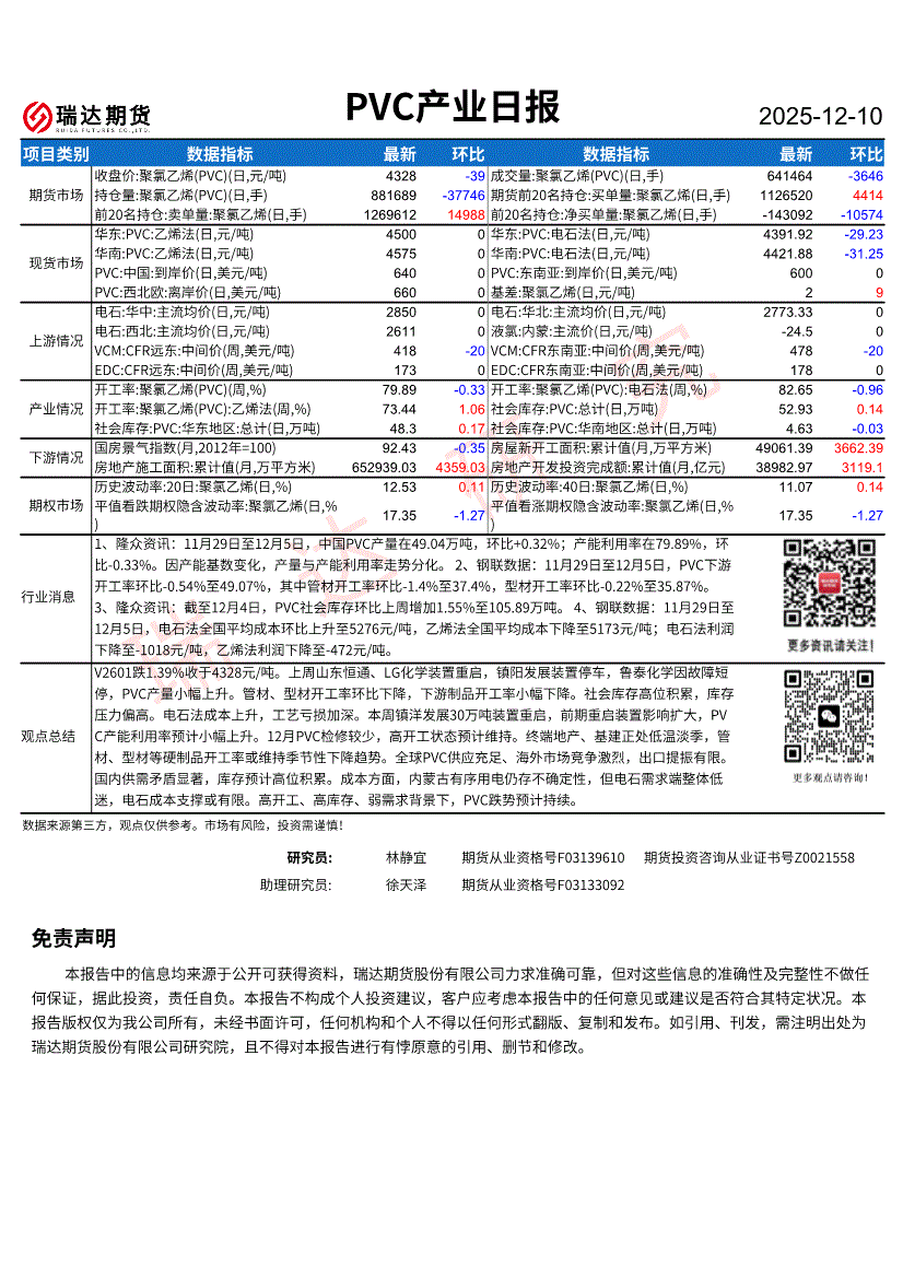 瑞达期货-PVC产业日报-251210