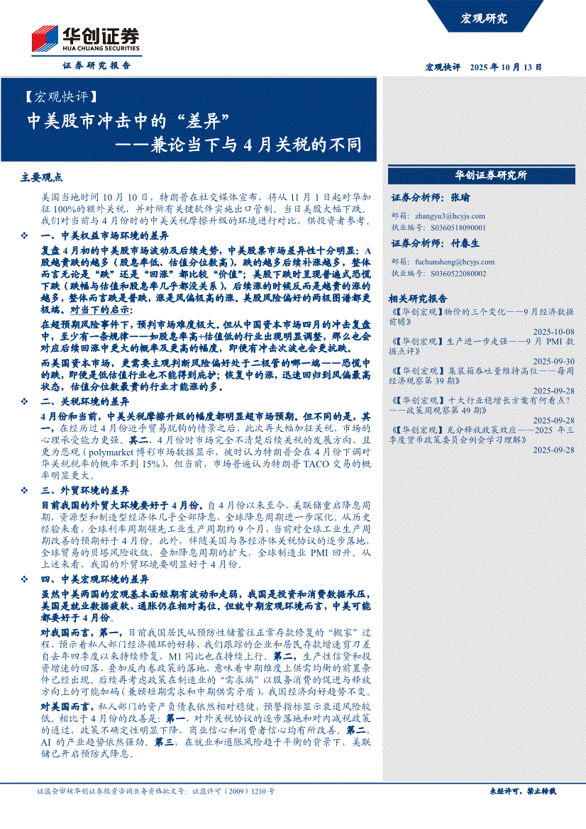 华创证券-【宏观快评】兼论当下与4月关税的不同:中美股市冲击中的“差异”-251013