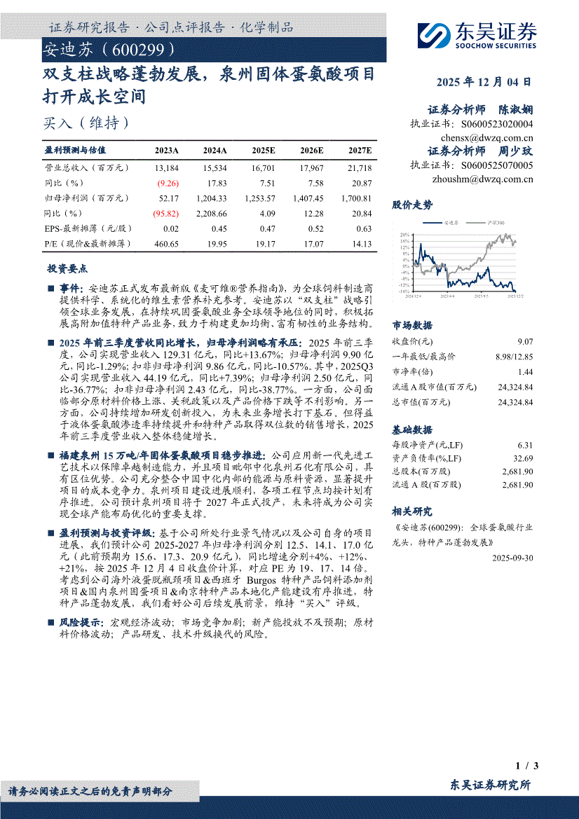 安迪苏:东吴证券-安迪苏-600299-双支柱战略蓬勃发展,泉州固体蛋氨酸项目打开成长空间-251204