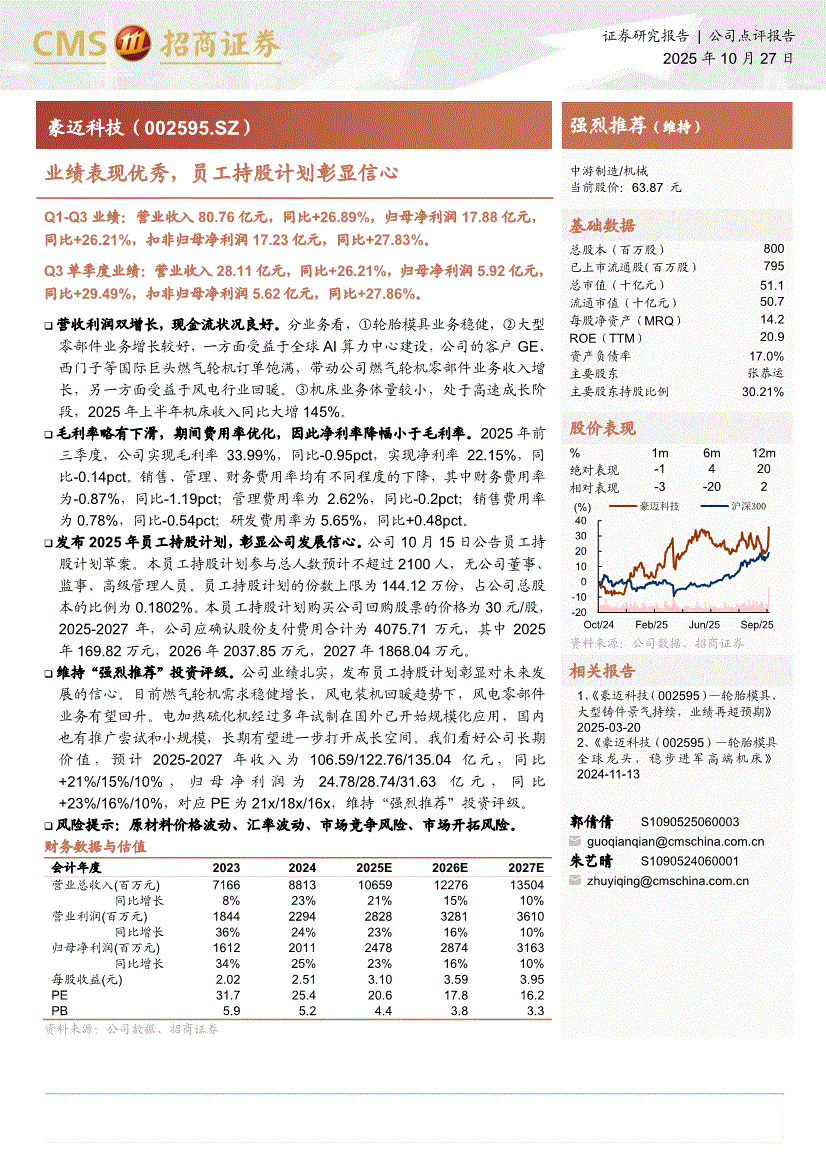 豪迈科技:招商证券-豪迈科技-002595-业绩表现优秀,员工持股计划彰显信心-251028