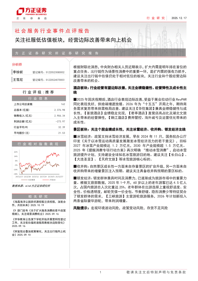 方正证券-社会服务行业事件点评报告:关注社服低估值板块,经营边际改善带来向上机会-251217