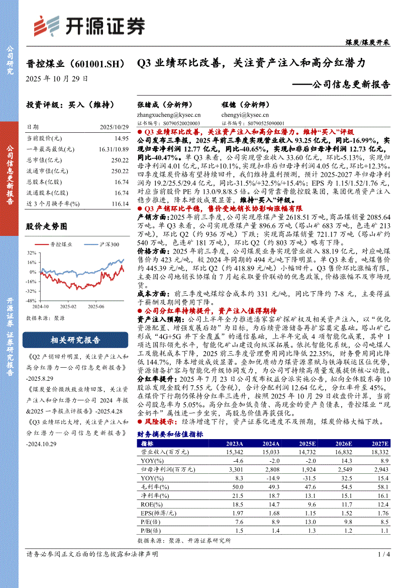 晋控煤业:开源证券-晋控煤业-601001-公司信息更新报告:Q3业绩环比改善,关注资产注入和高分红潜力-251029