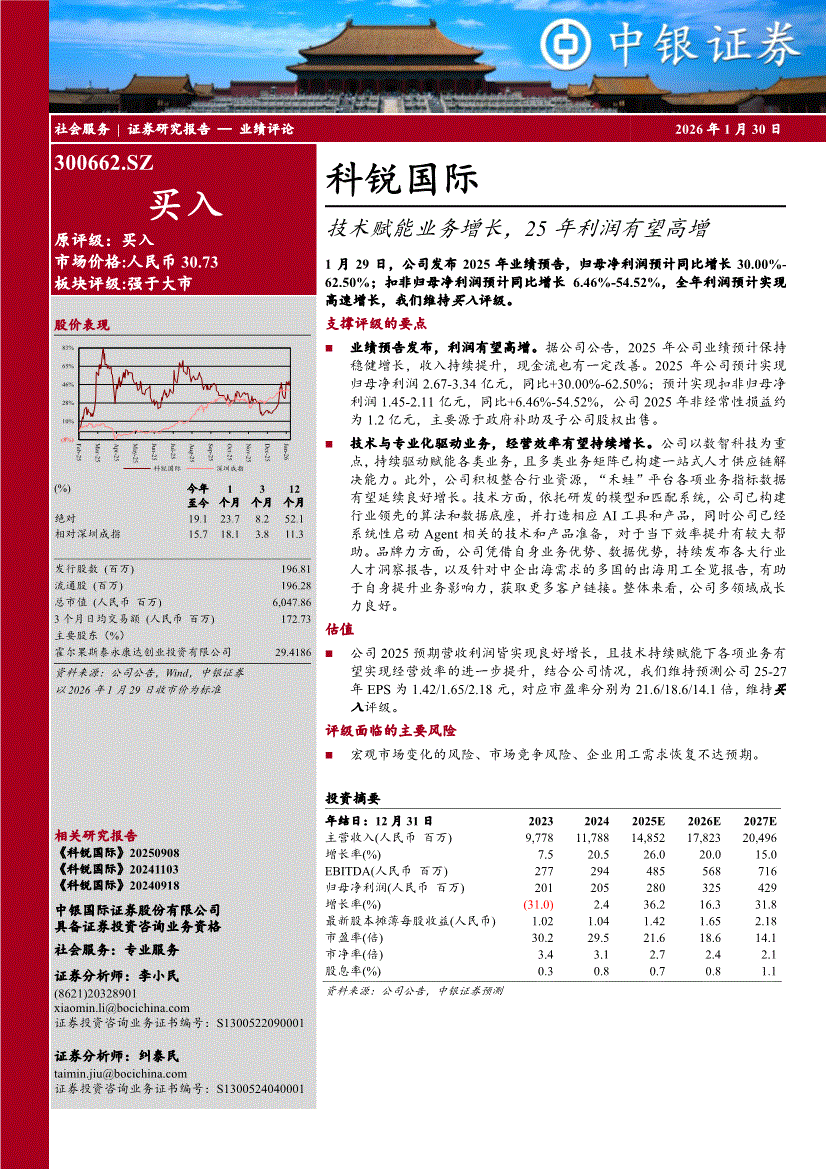 科锐国际:中银国际-科锐国际-300662-技术赋能业务增长,25年利润有望高增-260130