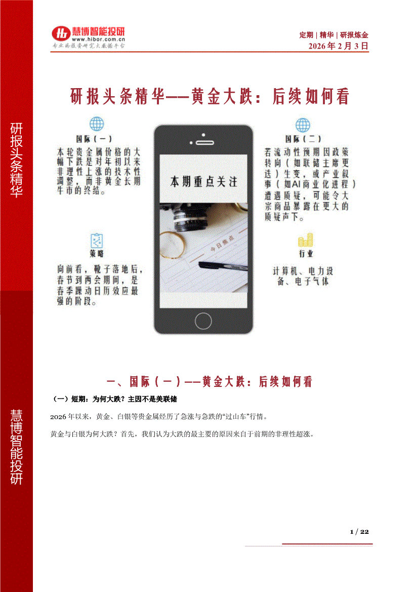 慧博智能投研-慧博研报炼金之研报头条精华:黄金大跌,后续如何看-260203