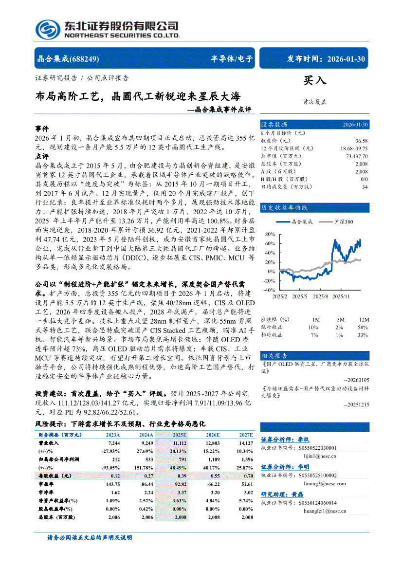 晶合集成:东北证券-晶合集成-688249-事件点评:布局高阶工艺,晶圆代工新锐迎来星辰大海-260130