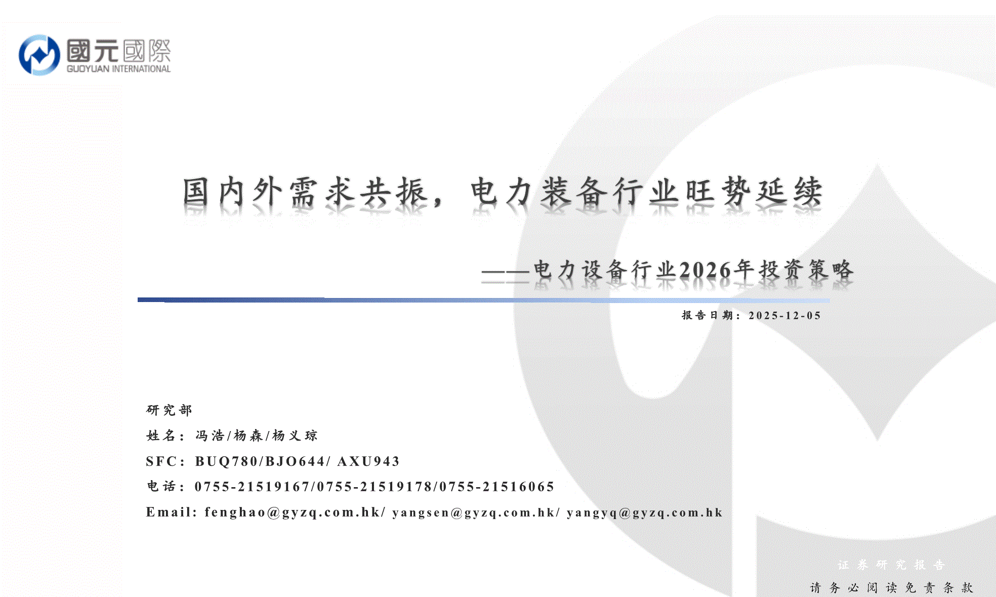 电力设备行业:国元国际-电力设备行业2026年投资策略:国内外需求共振,电力装备行业旺势延续-251205