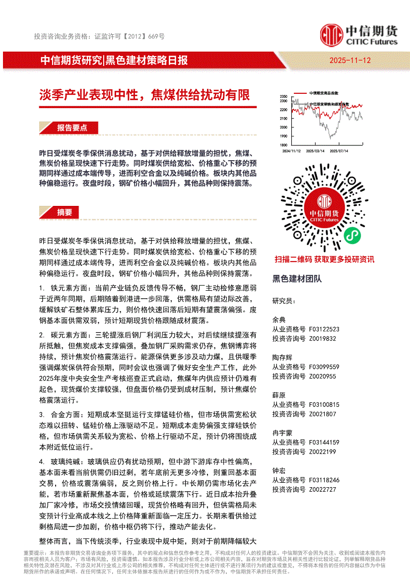 中信期货-黑色建材策略日报:淡季产业表现中性,焦煤供给扰动有限-251112