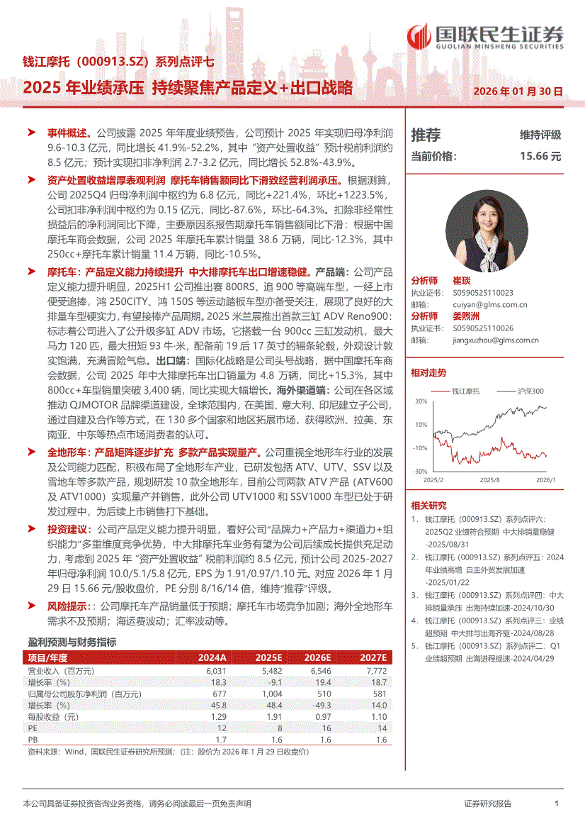钱江摩托:国联民生证券-钱江摩托-000913-系列点评七:2025年业绩承压,持续聚焦产品定义+出口战略-260130