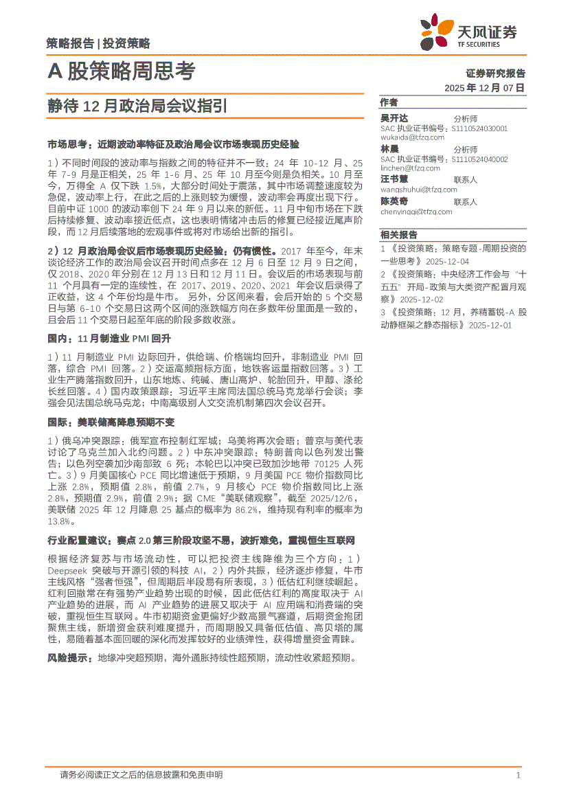 天风证券-A股策略周思考:静待12月政治局会议指引-251207