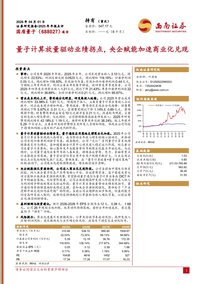 国盾量子:西南证券-国盾量子-688027-量子计算放量驱动业绩拐点,央企赋能加速商业化兑现-260401