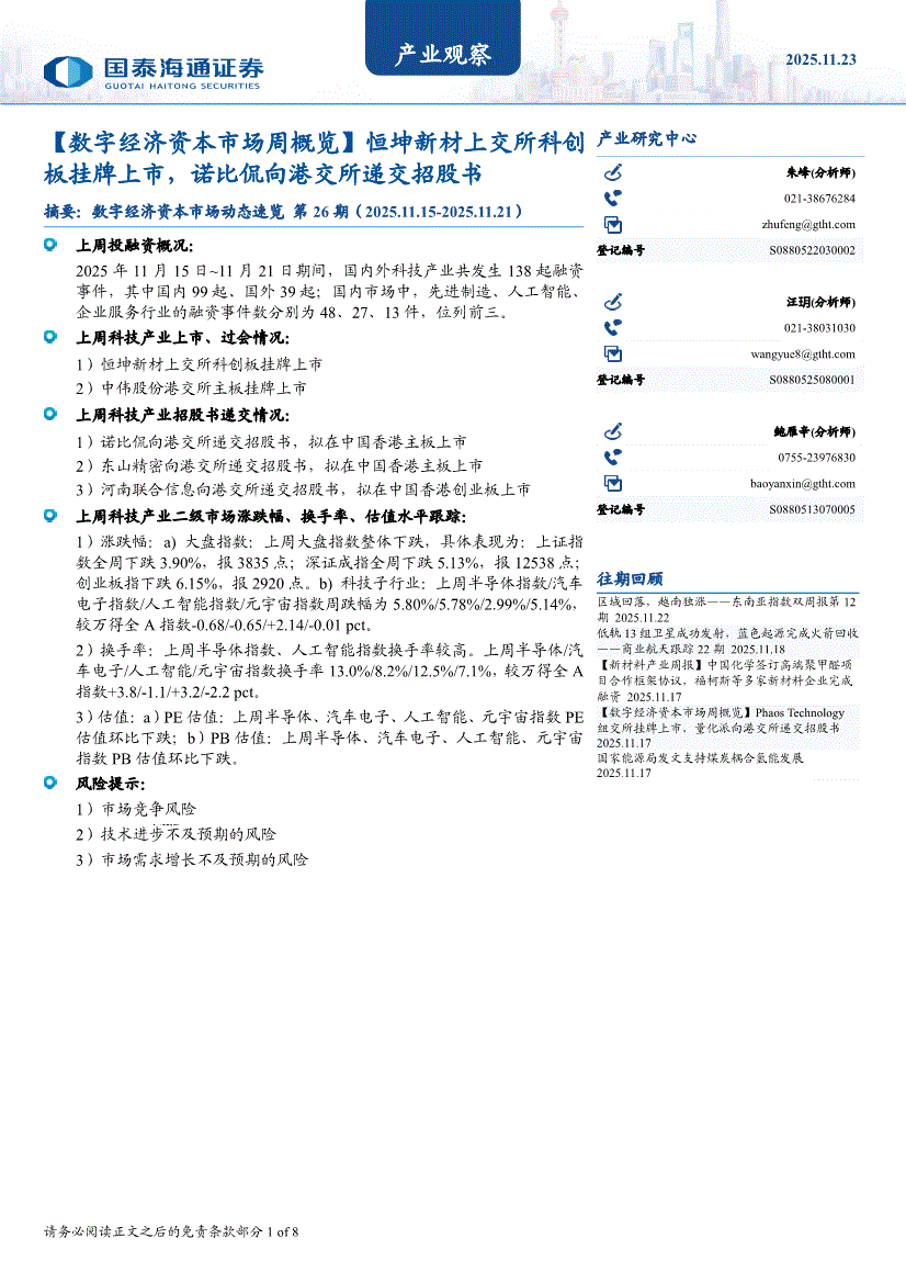 国泰海通证券-产业观察:【数字经济资本市场周概览】恒坤新材上交所科创板挂牌上市,诺比侃向港交所递交招股书-251123