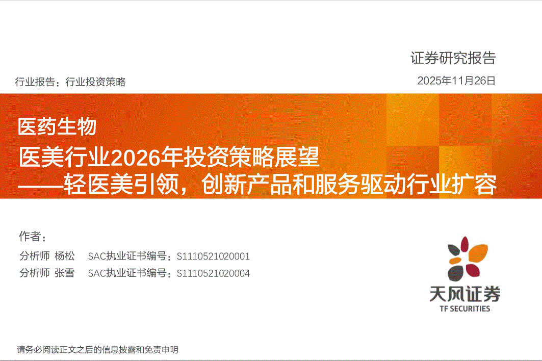 医药生物行业:天风证券-医美行业2026年投资策略展望:轻医美引领,创新产品和服务驱动行业扩容-251126