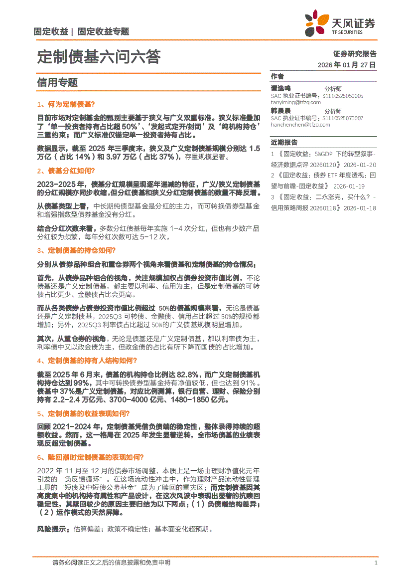 天风证券-信用专题:定制债基六问六答-260127