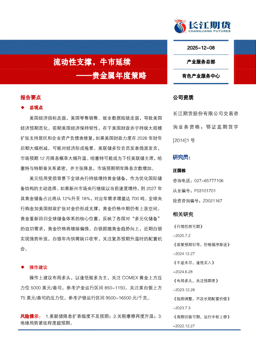 长江期货-贵金属年度策略:流动性支撑,牛市延续-251208