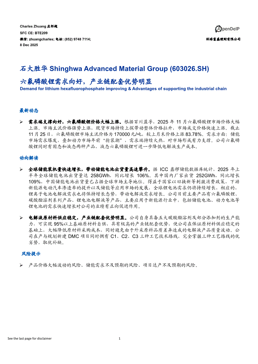 石大胜华:环球富盛-石大胜华-603026-六氟磷酸锂需求向好,产业链配套优势明显-251208