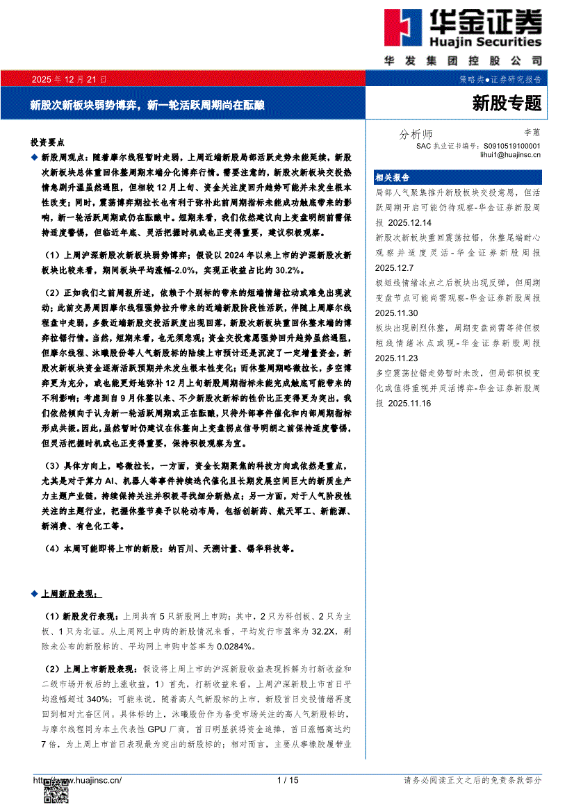 华金证券-新股专题:新股次新板块弱势博弈,新一轮活跃周期尚在酝酿-251221
