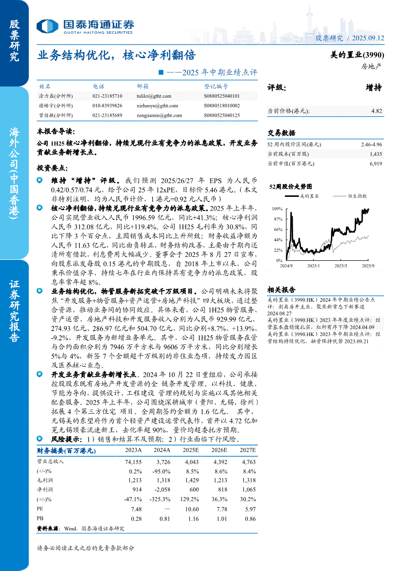 美的置业:国泰海通证券-美的置业-3990.HK-2025年中期业绩点评:业务结构优化,核心净利翻倍-250912