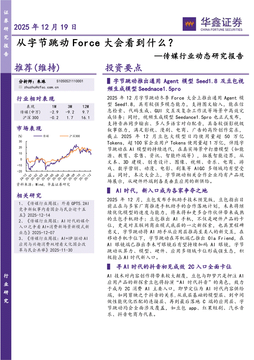 传媒行业:华鑫证券-传媒行业动态研究报告:从字节跳动Force大会看到什么?-251219