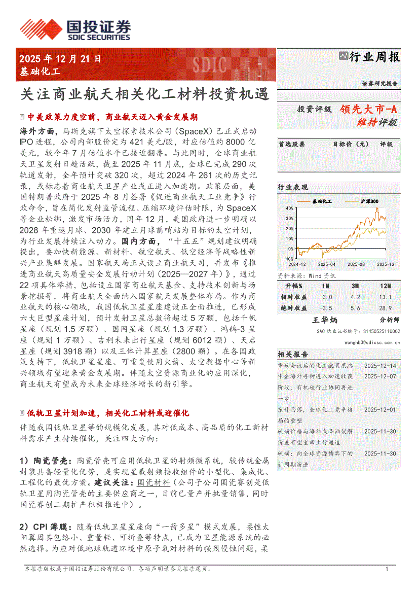 基础化工行业:国投证券-基础化工行业周报:关注商业航天相关化工材料投资机遇-251221