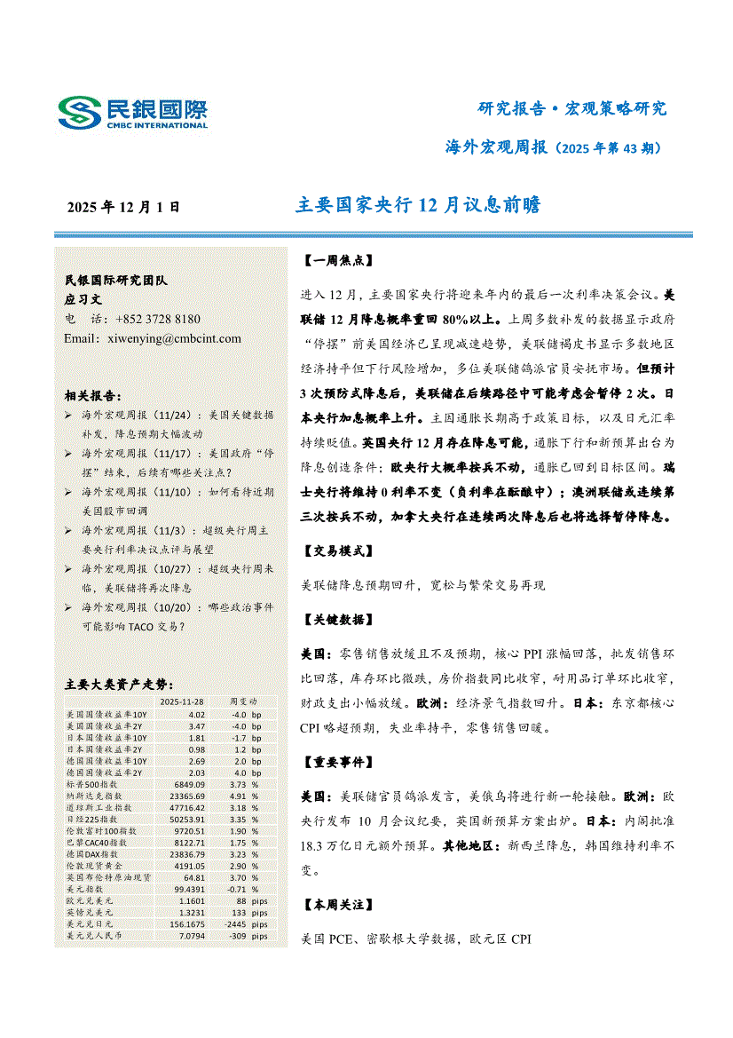 民银国际-海外宏观周报(2025年第43期):主要国家央行12月议息前瞻-251201