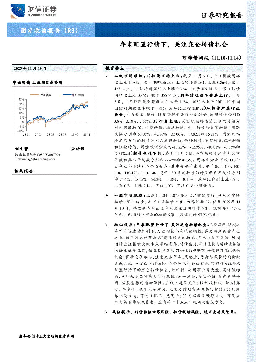 财信证券-可转债周报:年末配置行情下,关注底仓转债机会-251110