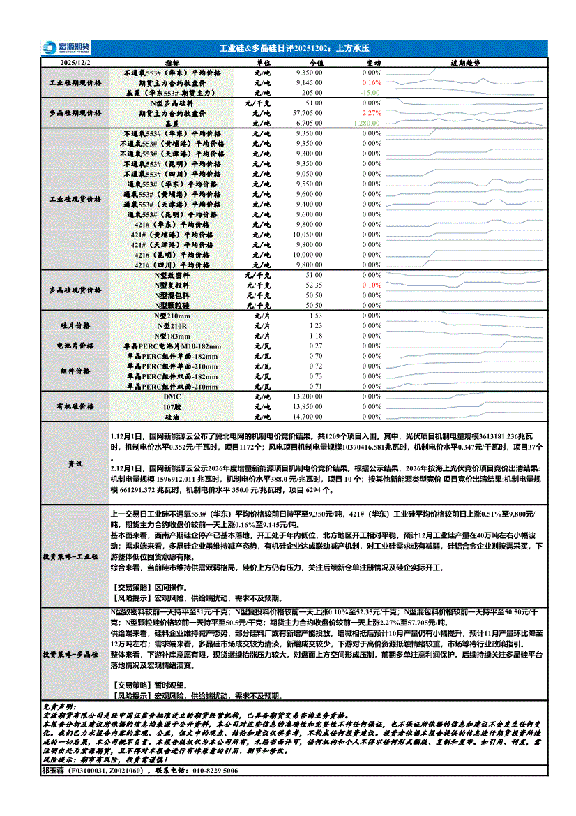 宏源期货-工业硅&多晶硅日评:上方承压-251208
