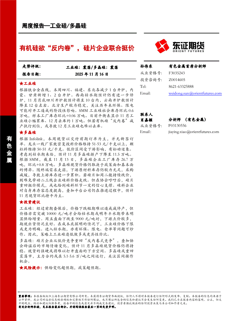 东证期货-周度报告—工业硅/多晶硅:工业硅成本抬升,多晶硅关注收储进展-251102