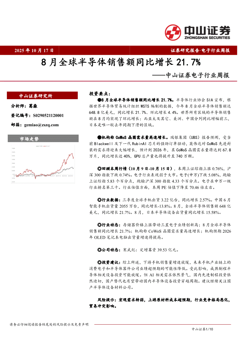 电子行业:中山证券-电子行业周报:8月全球半导体销售额同比增长21.7%-251017