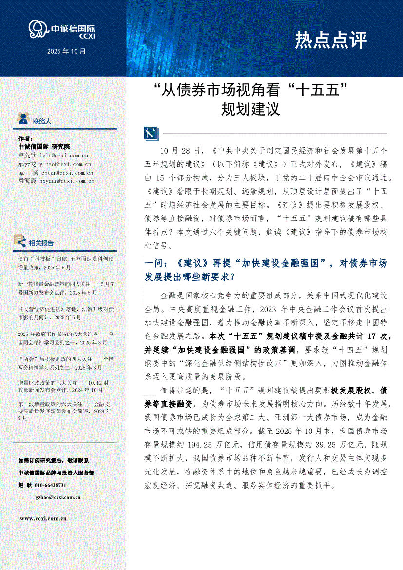 中诚信国际-从债券市场视角看“十五五”规划建议-251106