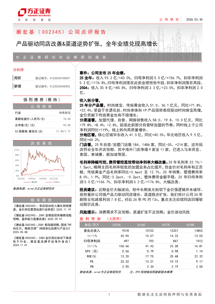 潮宏基:方正证券-潮宏基-002345-公司点评报告:产品驱动同店改善&渠道逆势扩张,全年业绩兑现高增长-260330