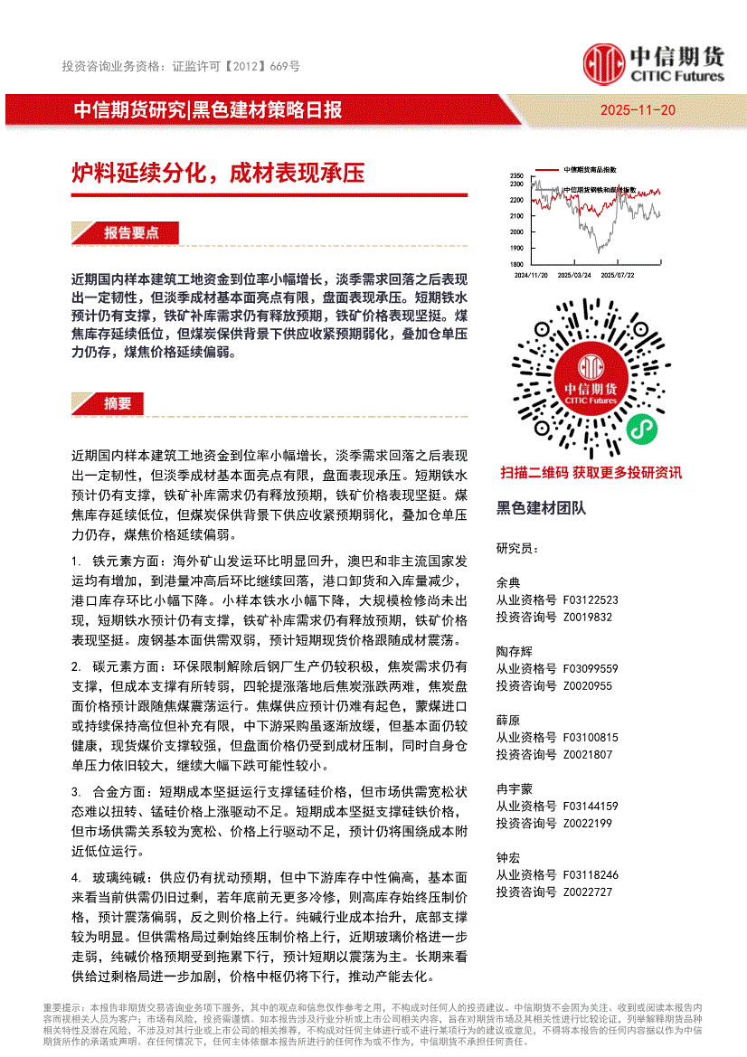 中信期货-黑色建材策略日报:炉料延续分化,成材表现承压-251120