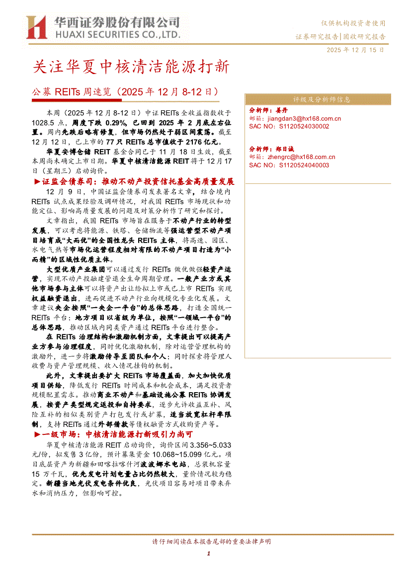 华西证券-公募REITs周速览:关注华夏中核清洁能源打新-251215