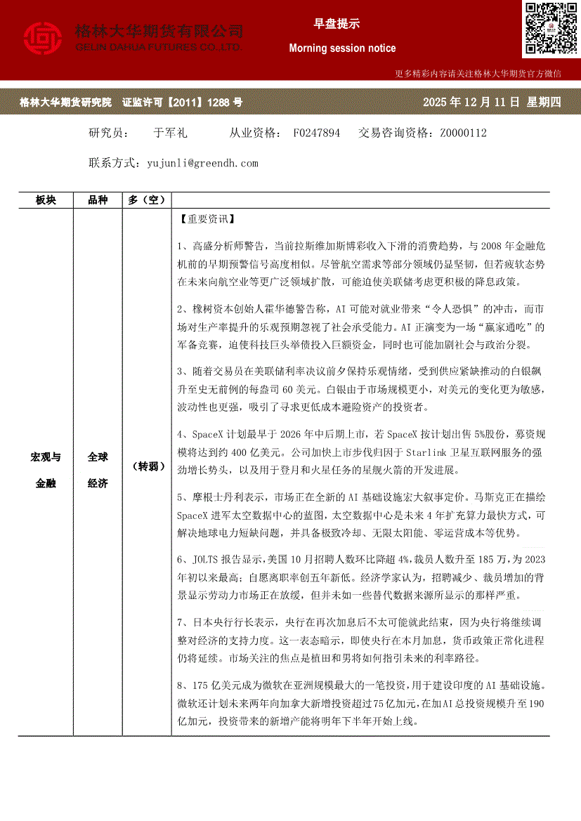 格林大华期货-宏观与金融早盘提示-251215
