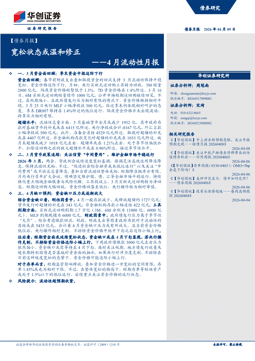 华创证券-【债券月报】宽松状态或温和修正——4月流动性月报-260409