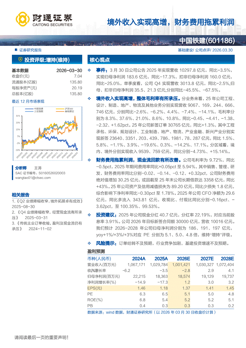 中国铁建:财通证券-中国铁建-601186-境外收入实现高增,财务费用拖累利润-260330