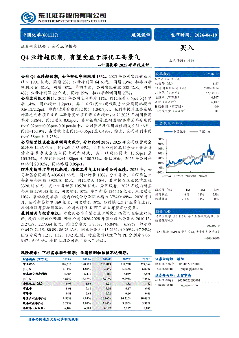 中国化学:东北证券-中国化学-601117-2025年年报点评:Q4业绩超预期,有望受益于煤化工高景气-260419