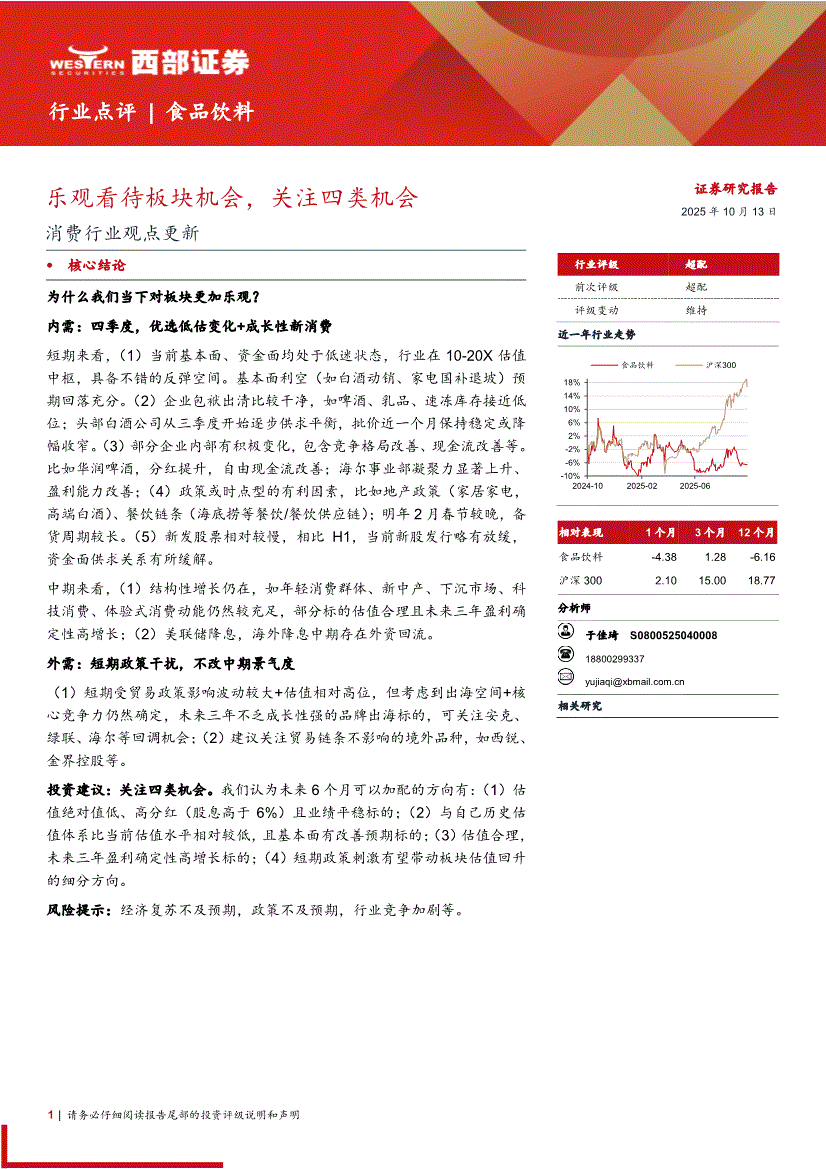 消费行业:西部证券-消费行业观点更新:乐观看待板块机会,关注四类机会-251013