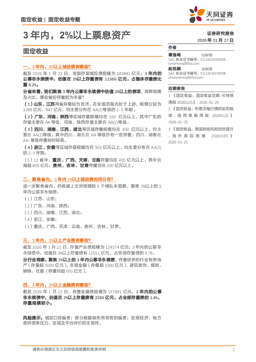 天风证券-固定收益专题:3年内,2%以上票息资产-260127