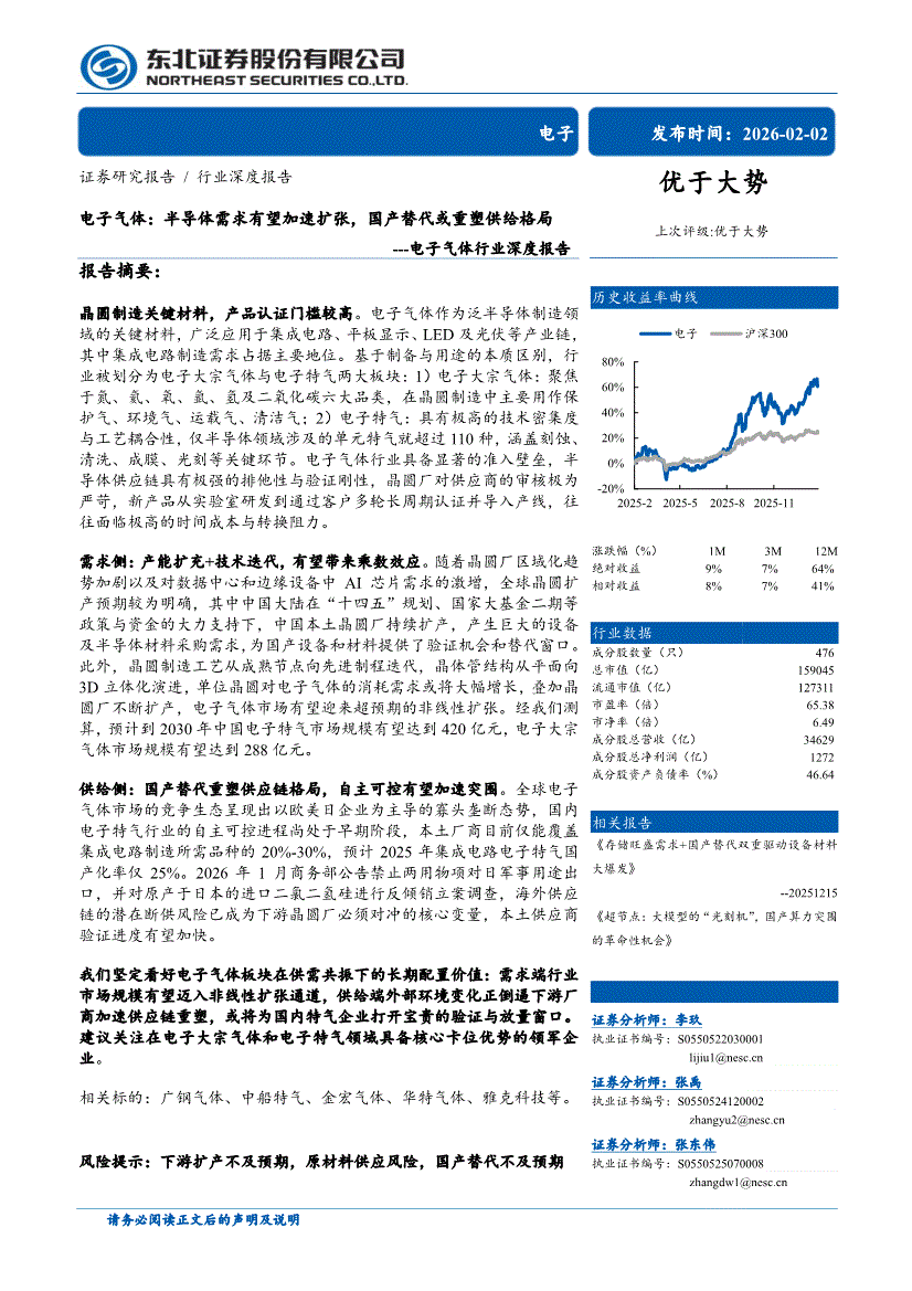 电子气体行业:东北证券-电子气体行业深度报告:电子气体,半导体需求有望加速扩张,国产替代或重塑供给格局-260202