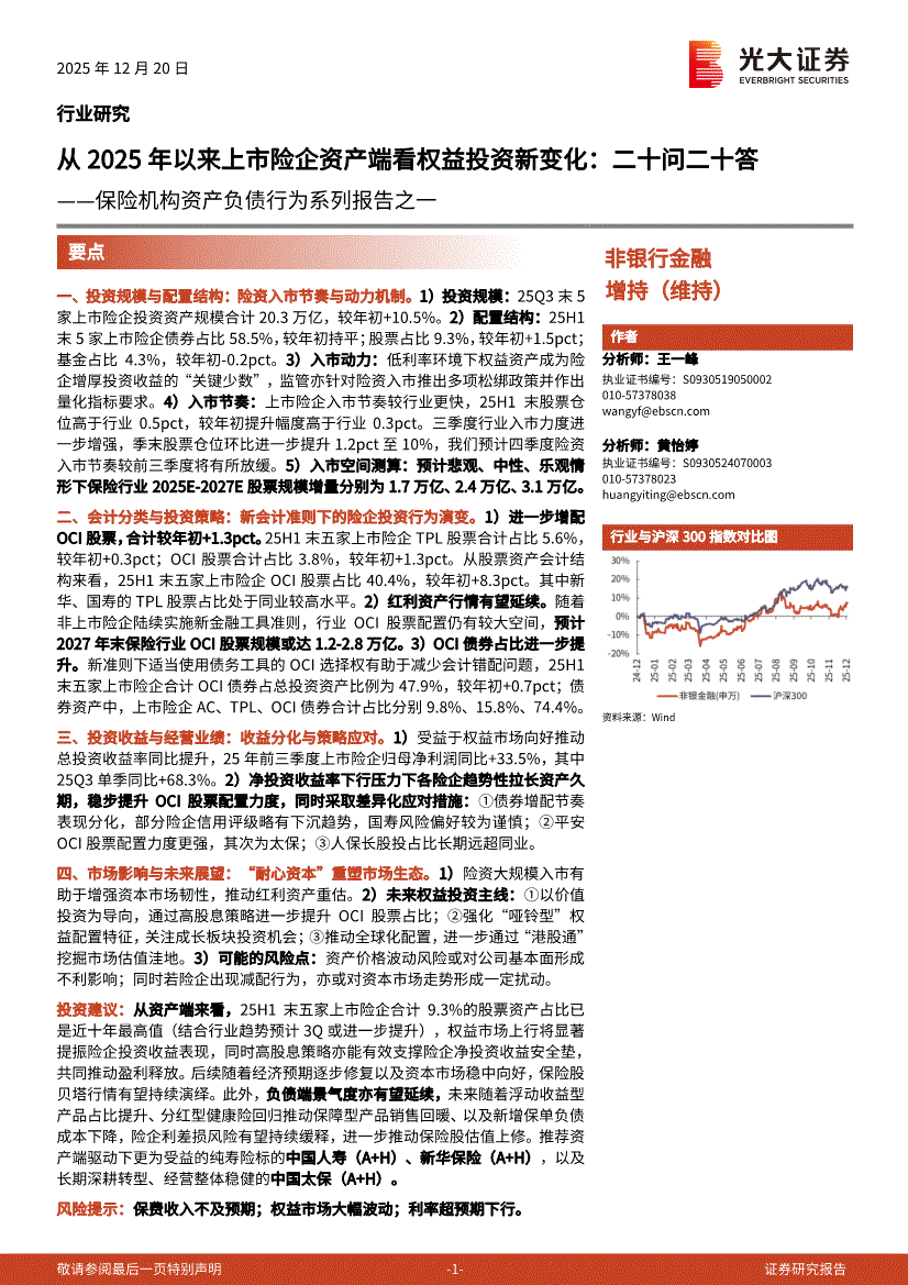 非银行金融行业:光大证券-非银行金融行业保险机构资产负债行为系列报告之一:从2025年以来上市险企资产端看权益投资新变化,二十问二十答-251220