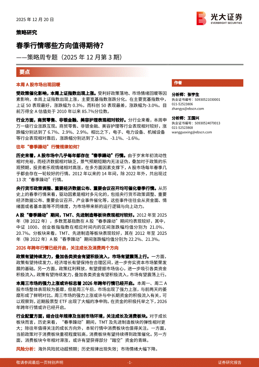 光大证券-策略周专题(2025年12月第3期):春季行情哪些方向值得期待?-251220