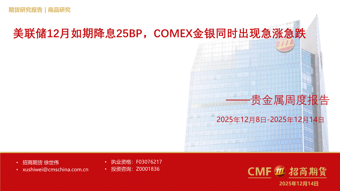 招商期货-贵金属周度报告:美联储12月如期降息25BP,COMEX金银同时出现急涨急跌-251214