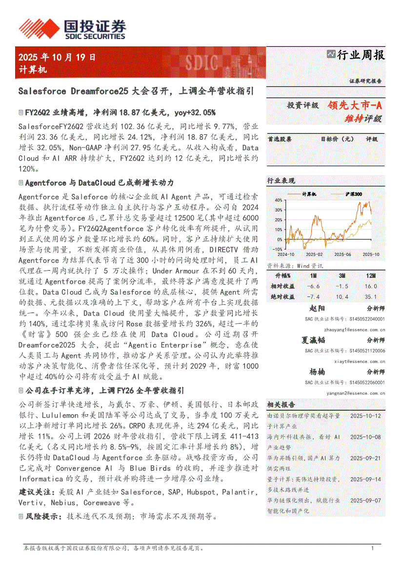 计算机行业:国投证券-计算机行业周报:Salesforce Dreamforce25大会召开,上调全年营收指引-251019