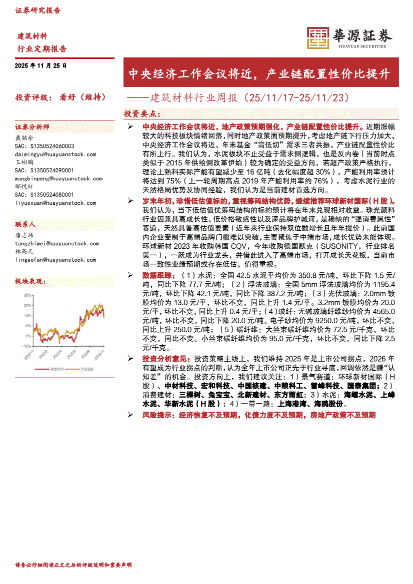 建筑材料行业:华源证券-建筑材料行业周报:中央经济工作会议将近,产业链配置性价比提升-251125