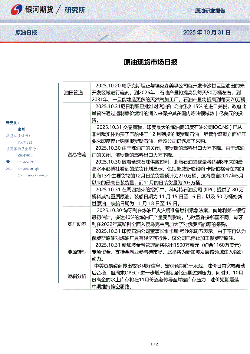 银河期货-原油12月报:过剩压力显著,地缘风险尚存-251127
