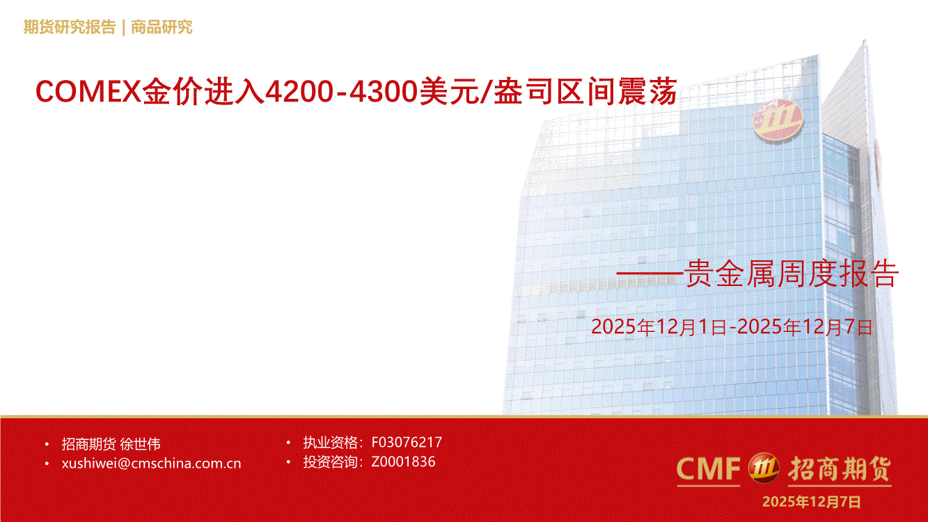 招商期货-贵金属周度报告:COMEX金价进入4200~4300美元/盎司区间震荡-251207