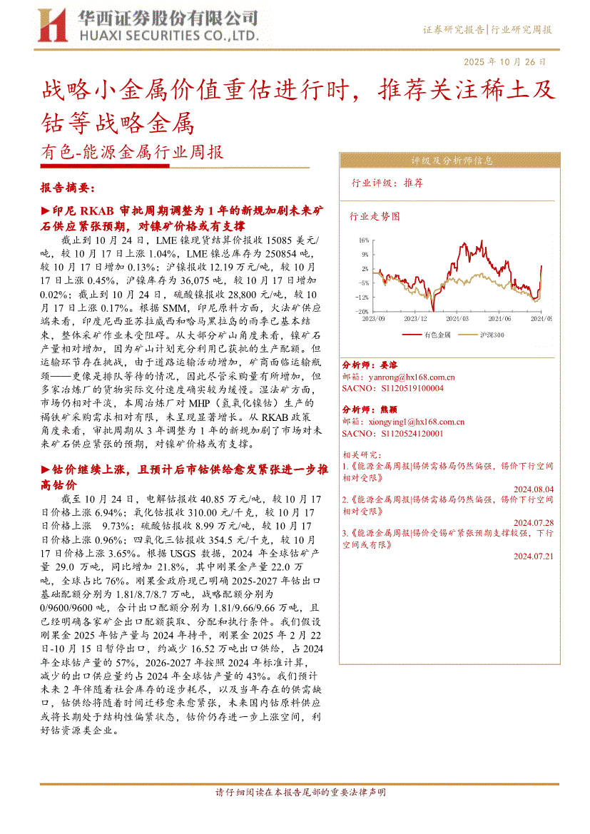 华西证券-有色~能源金属行业周报:战略小金属价值重估进行时,推荐关注稀土及钴等战略金属-251026
