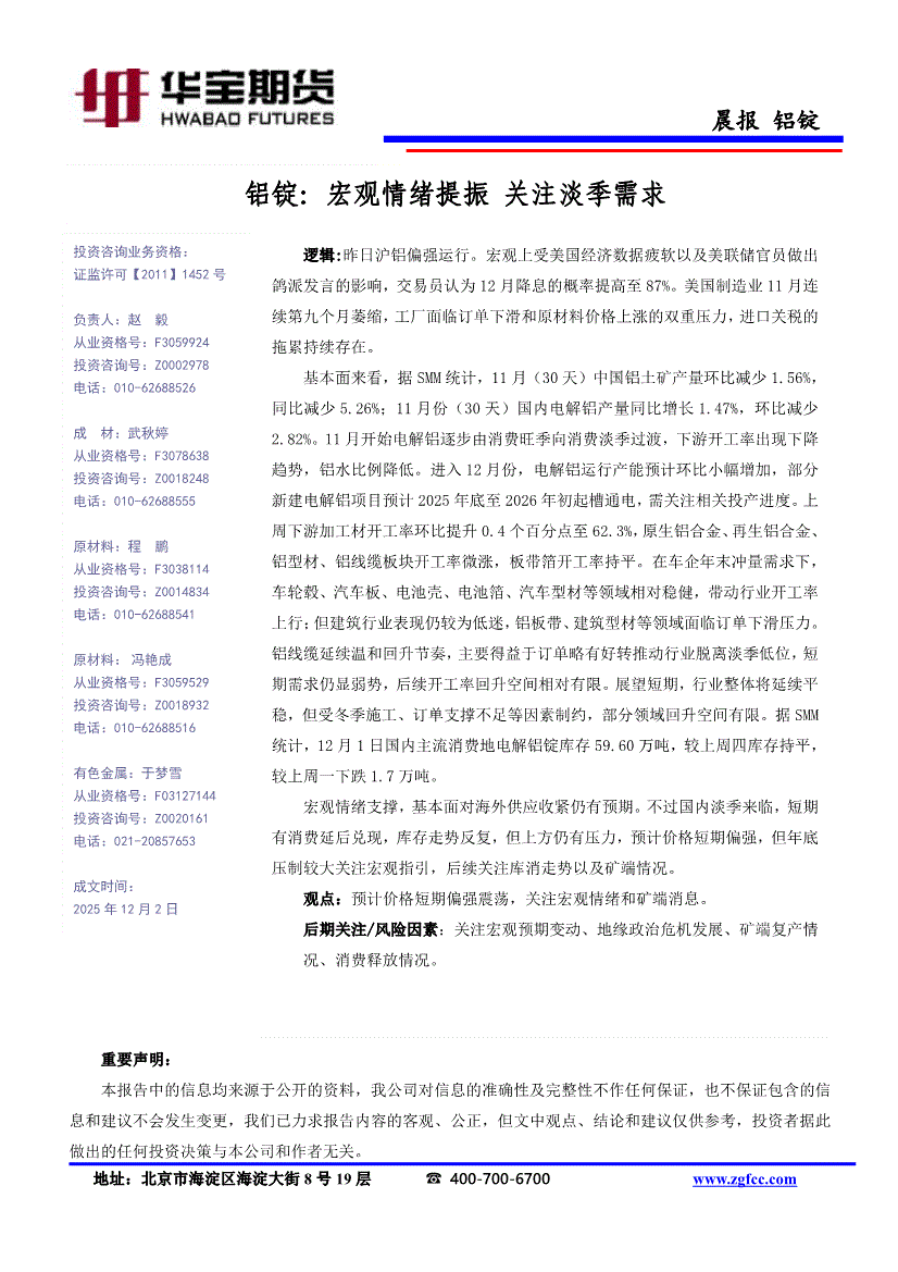 华宝期货-铝锭:宏观情绪提振,关注淡季需求-251202
