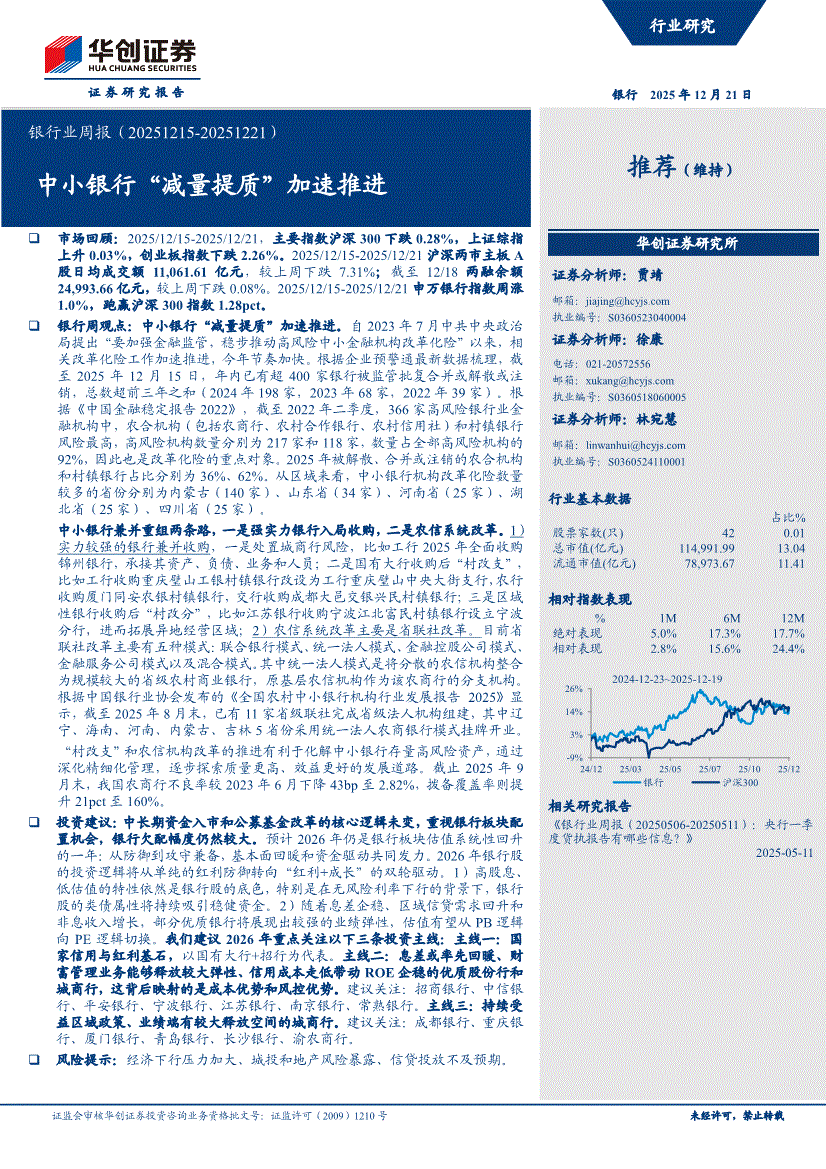 银行业:华创证券-银行业周报(20251215~20251221):中小银行“减量提质”加速推进-251221